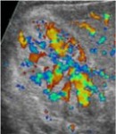 сканирование в цветовом режиме. Интраренальный сосудистый рисунок сохранен во