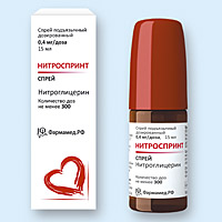 | НИТРОСПРИНТ | ◊ спрей подъязычный дозированный 400 мкг/1 доза: флакон 15 мл (300 доз) с механическим насосом и распылителем | ТЕХНОКОМ ООО (Группа компаний ФАРМАМЕД.РФ) (Россия) | |