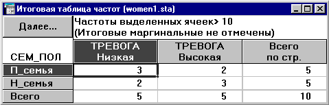 мышью. В окне Результаты кросстабуляции нажмите вновь